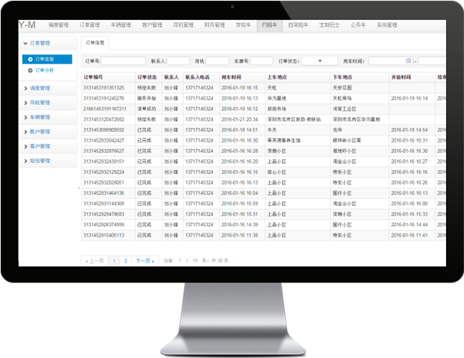 訂單管理 車輛管理 調(diào)度管理 GPS管理 系統(tǒng)管理 客戶管理 財務(wù)管理 司機(jī)管理 安全管理 短信管理