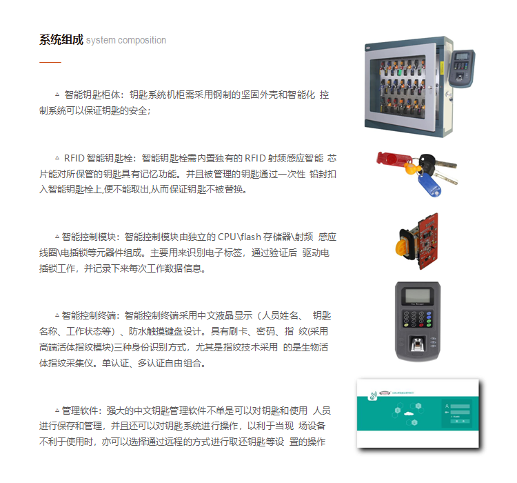 系統(tǒng)包含:智能鑰匙柜體1個(gè)、智能鑰匙栓、